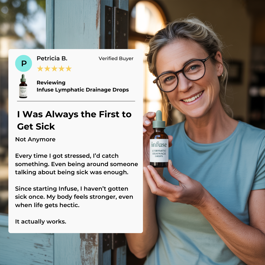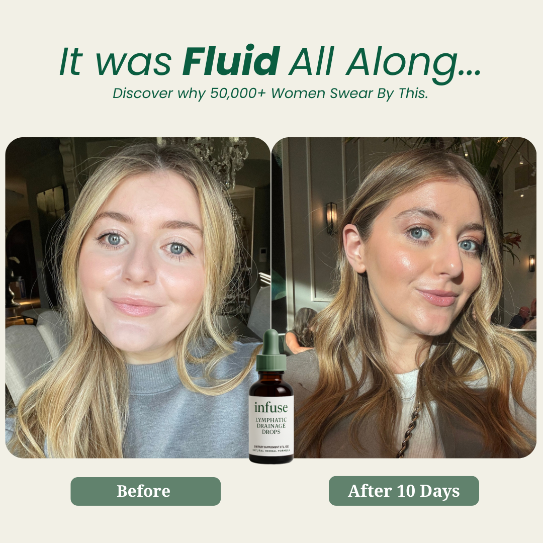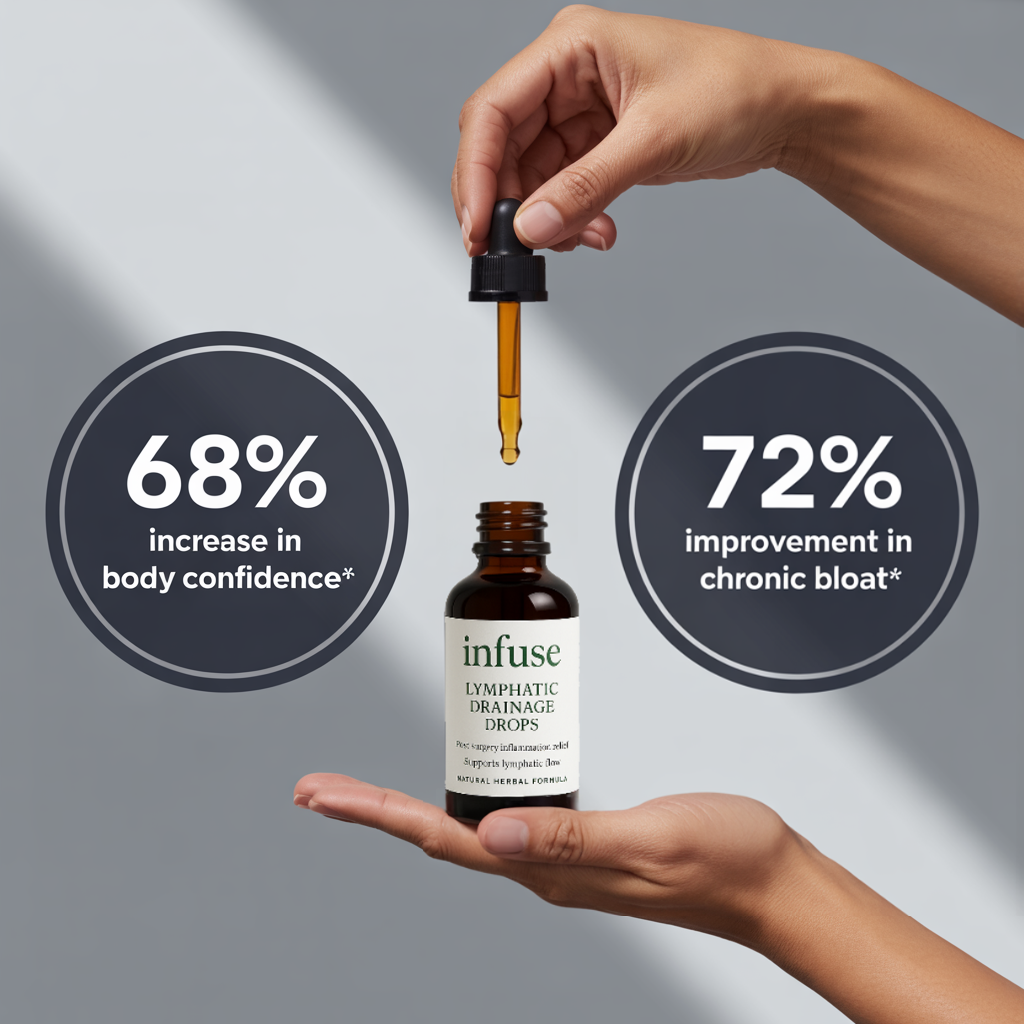 Our ingredients help activate lymphatic circulation, release trapped fluid, and reduce inflammation ,while supporting your body’s natural detox pathways. The only daily drops that address the root cause of swelling, not just the symptoms.