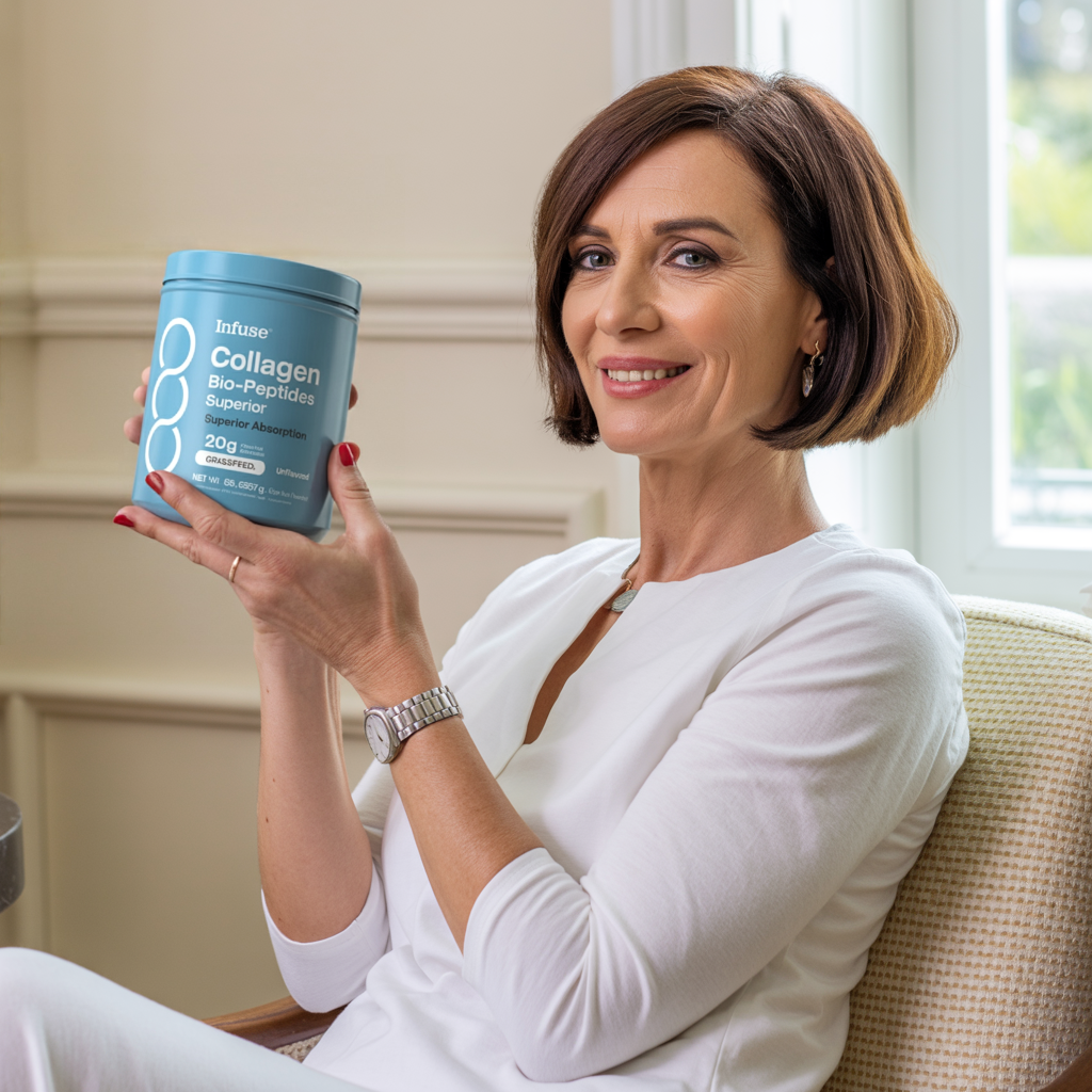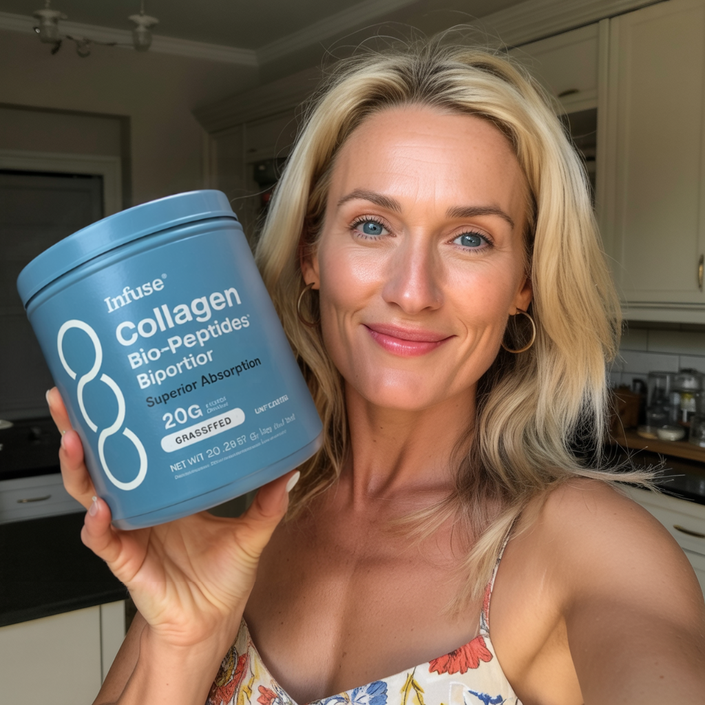 Infuse combines collagen + protein + amino acids in a clinically balanced ratio designed for hair, skin, and joint recovery, especially for women on GLP-1s like Ozempic or Wegovy.