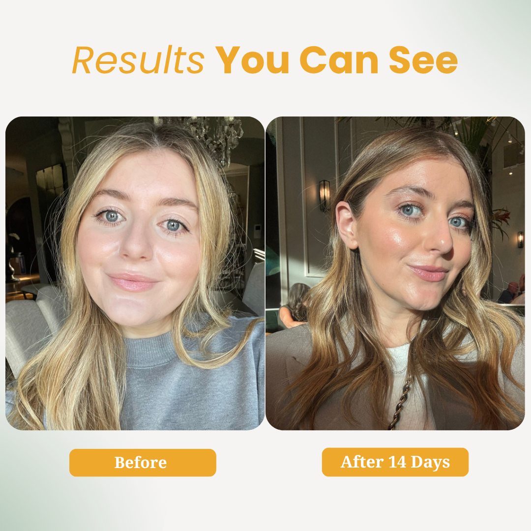 Most people notice lighter, less puffy features in 3–7 days, with continued improvements over time.